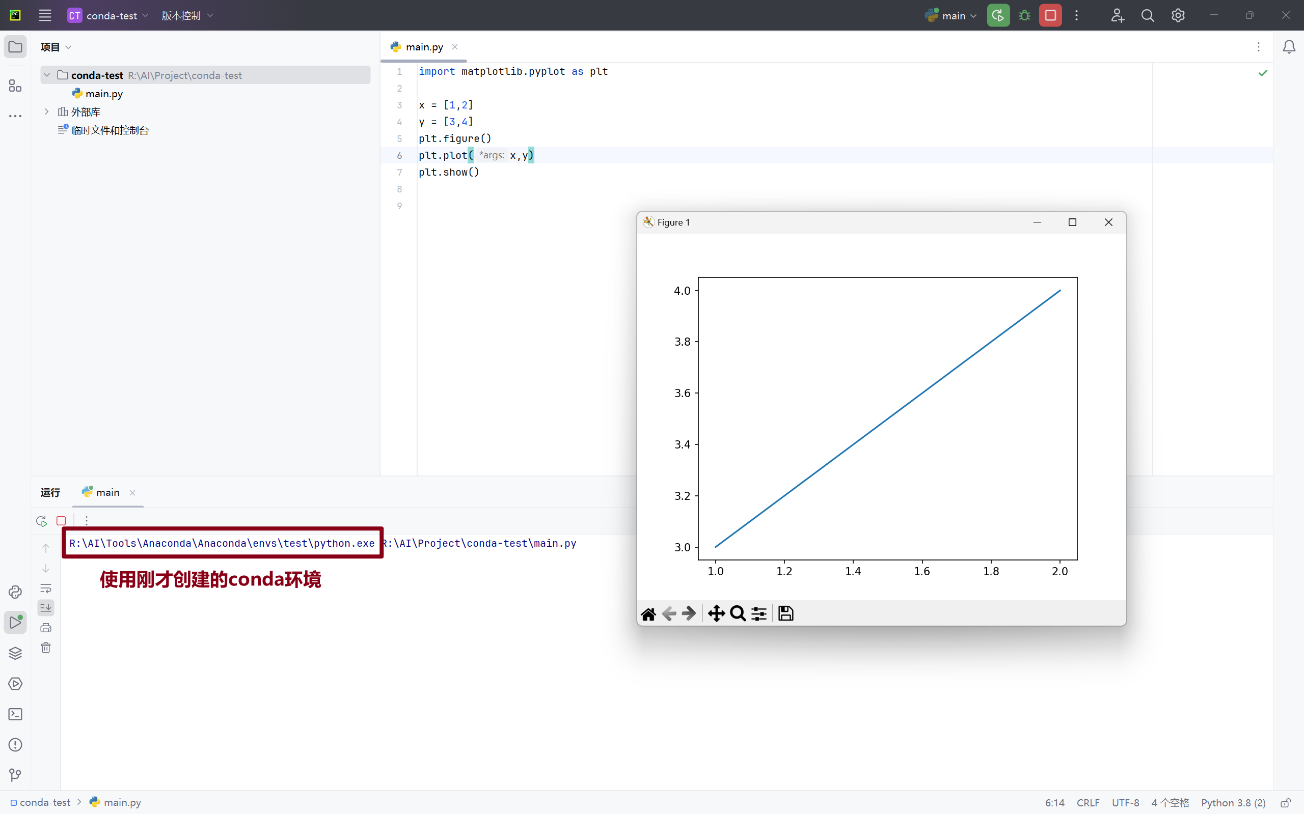 创建一个名为 “myenv” 的新环境,制定 python 版本为 3.8