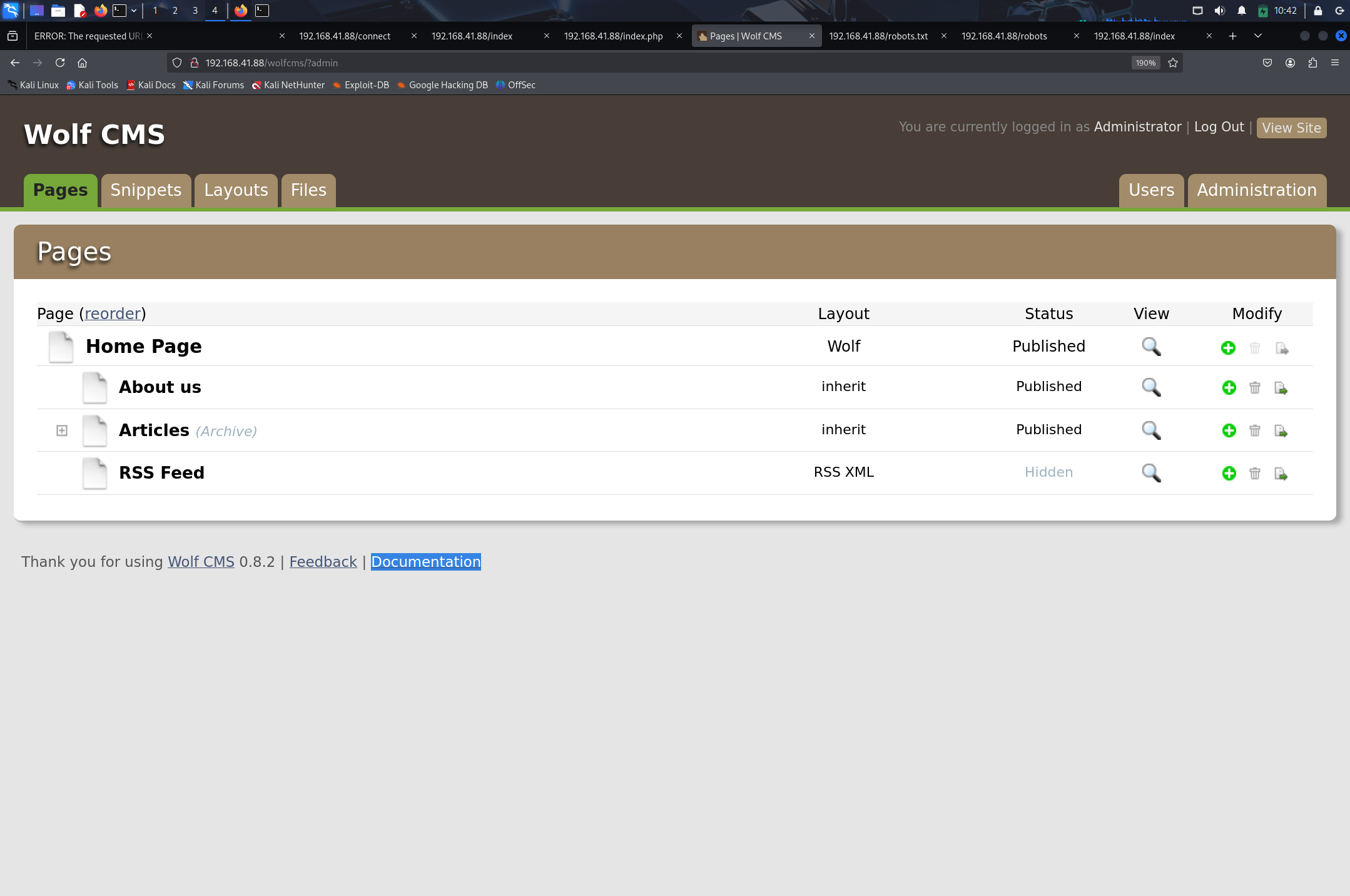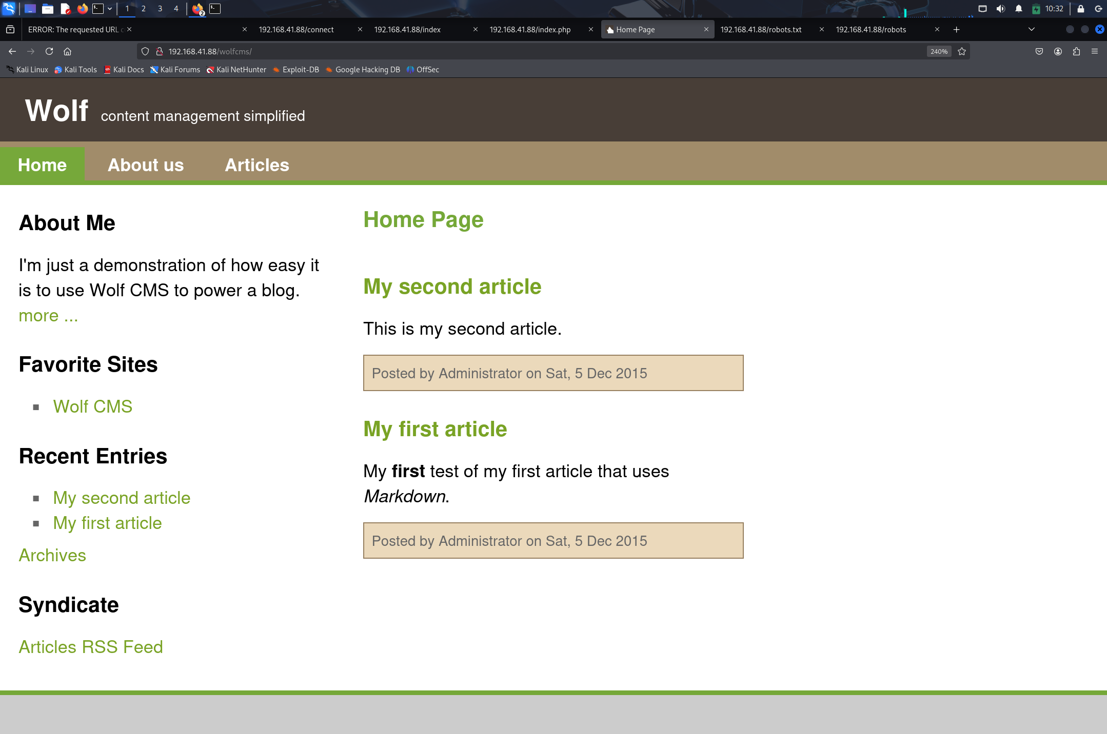 发现 wolfcms,尝试 URL